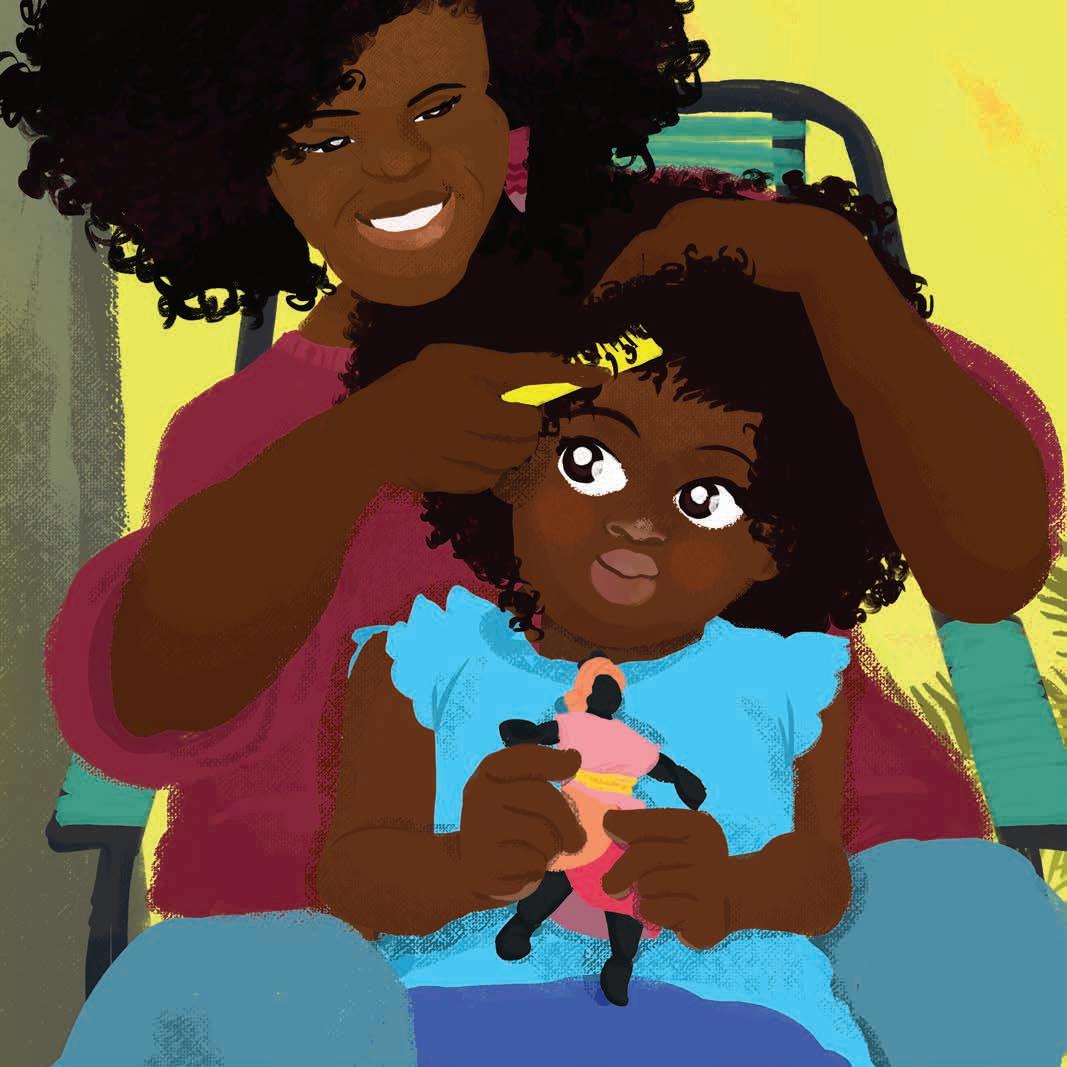 Com Qual Penteado Eu Vou? é um livro que já inicia instigando a criança com uma pergunta e, para mim, essa é uma das melhores maneiras de começar uma história. Um título que pergunta é ideal para a criança, pois a infância é, justamente, a fase de perguntar. Esta história tem o ritmo bom para dormir na cadência do pentear os cabelos crespos de uma criança. O ato de penteá-los é uma forma de narrar histórias exatamente no tempo em que se dá o encontro das mãos adultas com os fios de cabelo da filha, do filho, da neta, do neto, da sobrinha ou do sobrinho.