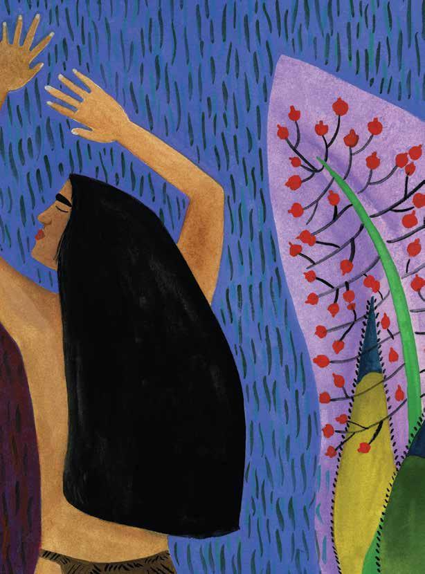 Foi nesse dia que vovó me disse que os jatobás são sagrados. Continuei olhando para o alto, encantado pelo momento. Vi que aquela grande árvore de fato era como a gente. Os galhos pareciam grandes braços e logo se transformavam em outros menores, como se fossem dedos vestidos com folhas verdes e de unhas gigantes.