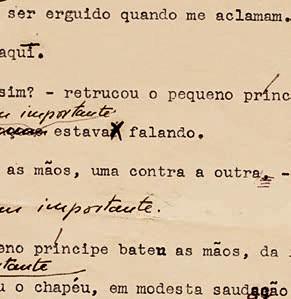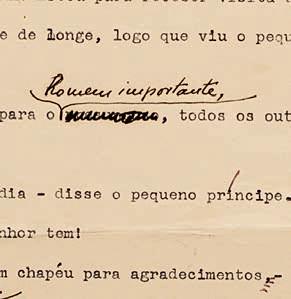 decorrer das páginas: erros de datilografia e frases reescritas. Trocou, também, algumas palavras por outras que julgou mais adequadas, como homem presunçoso por homem importante.