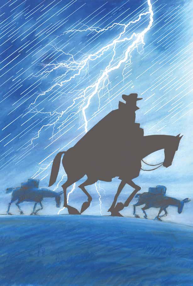 A chuva era muito forte, mas meu avô estava protegido por sua enorme capa gaúcha que cobria, também, o dorso do animal que ele montava: contra a luz dos raios, a silhueta que se desenhava parecia ser a de um só animal.
