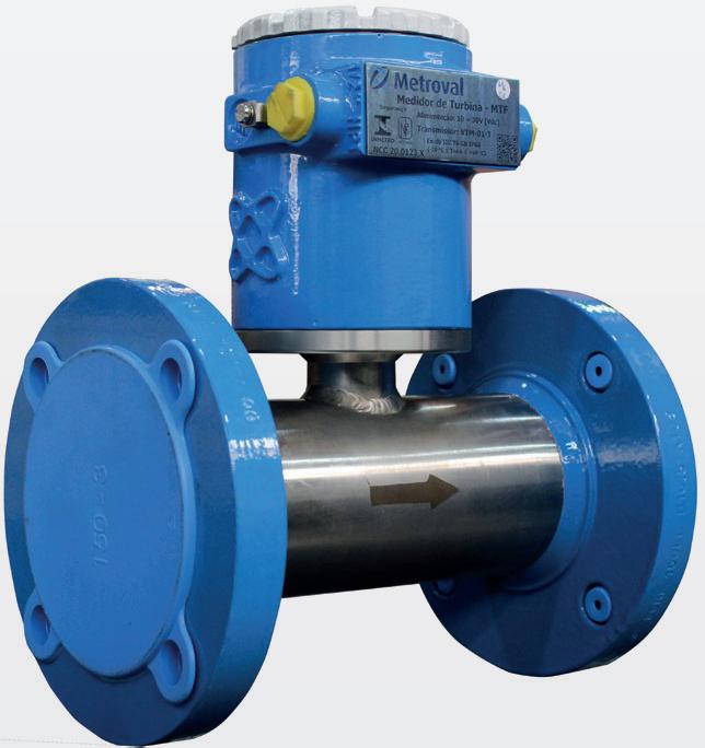O Medidor de vazão tipo Turbina MTF da Metroval consiste montado concentricamente no interior de um trecho de tubo gera uma rotação ao rotor que passa a girar a uma velocidade angular proporcional à vazão. As palhetas do Rotor ao atravessar o campo de um Sensor Magnético inserido no corpo da turbina geram uma voltagem pulsada na bobina do Sensor Magnético. Cada pulso representa um volume discreto de forma que o número total de pulsos gerados em determinado período de tempo representam o volume total medido pela Turbina.