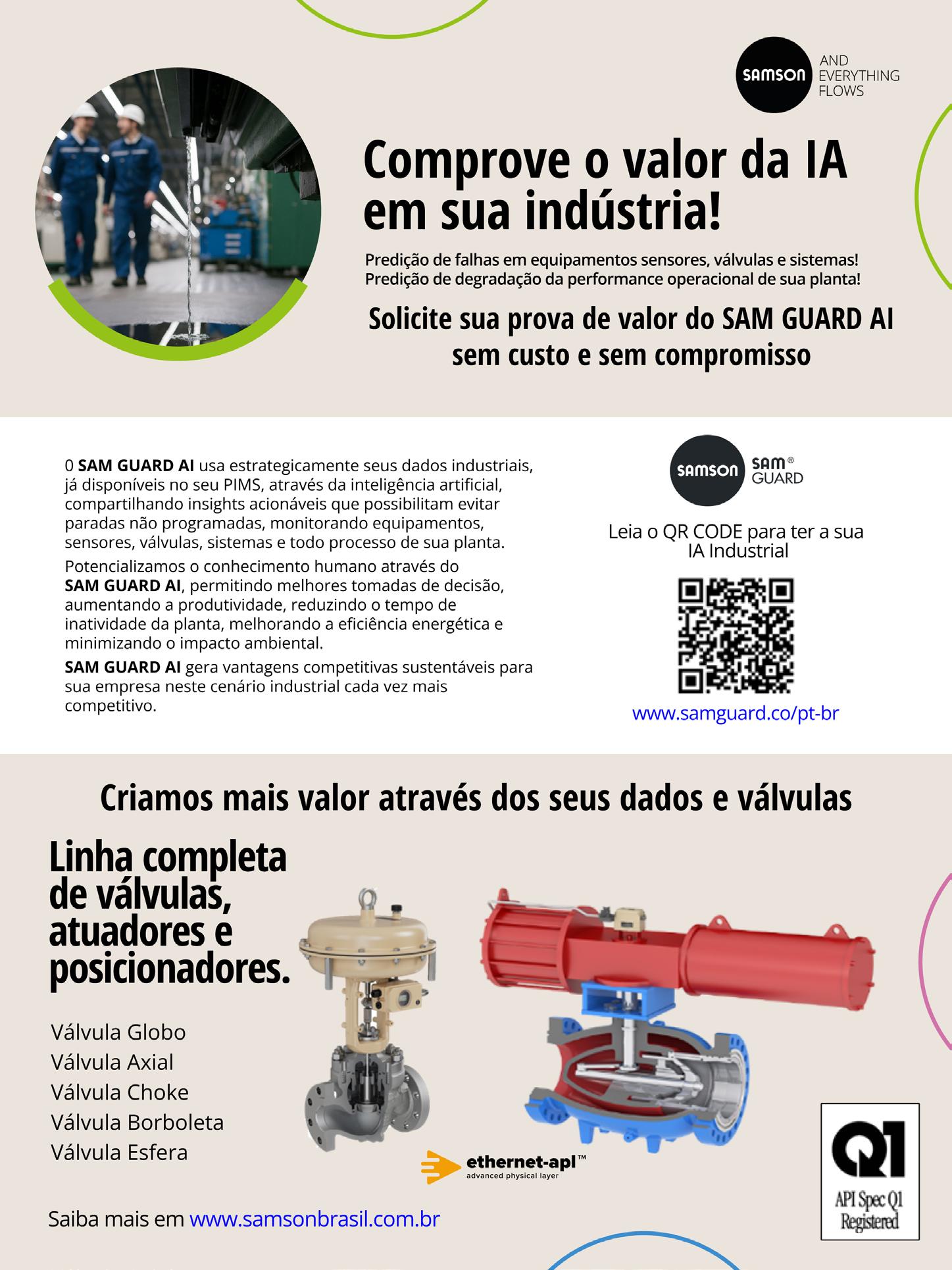 A Valmet oferece um portfólio robusto, reconhecido por aumentar a confiabilidade, a produtividade e a segurança das refinarias. As válvulas são um elemento vital das plantas, controlam o fluxo de fluidos entre equipamentos de processo e possuem um papel importante na segurança em ambientes de alta complexidade. O portfólio, que reúne as marcas NelesTM, JamesburyTM e Flowrox ™, abrange desde válvulas on-off e de controle para aplicações regulares até soluções específicas para ambientes extremos, como unidades PSA para produção de hidrogênio, aplicações com catalisadores, oxigênio, olefinas, aromáticos, solventes e combustíveis. Os equipamentos podem ser desenvolvidos com materiais e internos especiais, projetados para mitigar fenômenos como flashing, ruído e cavitação em fluidos não limpos. Com destaque para sua linha de controles e diagnósticos inteligentes para válvulas NelesTM e StonelTM, que aumentam a eficiência operacional e reduzem custos de manutenção, como o posicionador inteligente Partial Stroke Test NelesTM ValvGuardTM VG9000, projetado para válvulas de bloqueio e de emergência (ESD) e de alívio de emergência (ESV). Compatível com os protocolos de comunicação HART e Foundation Fieldbus e certificação SIL 3, o ValvGuard oferece a mais ampla gama de testes e diagnósticos do mercado, garantindo segurança operacional, confiabilidade e desempenho.