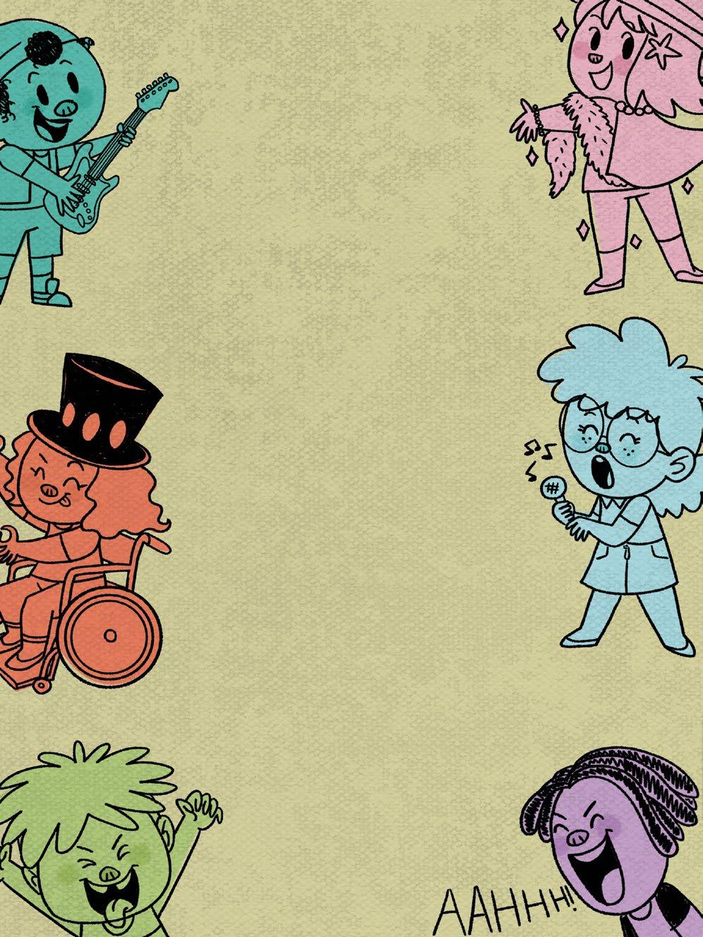 • Brincar com as atividades propostas no livro, imitando os gestos e estilos dos roqueiros.