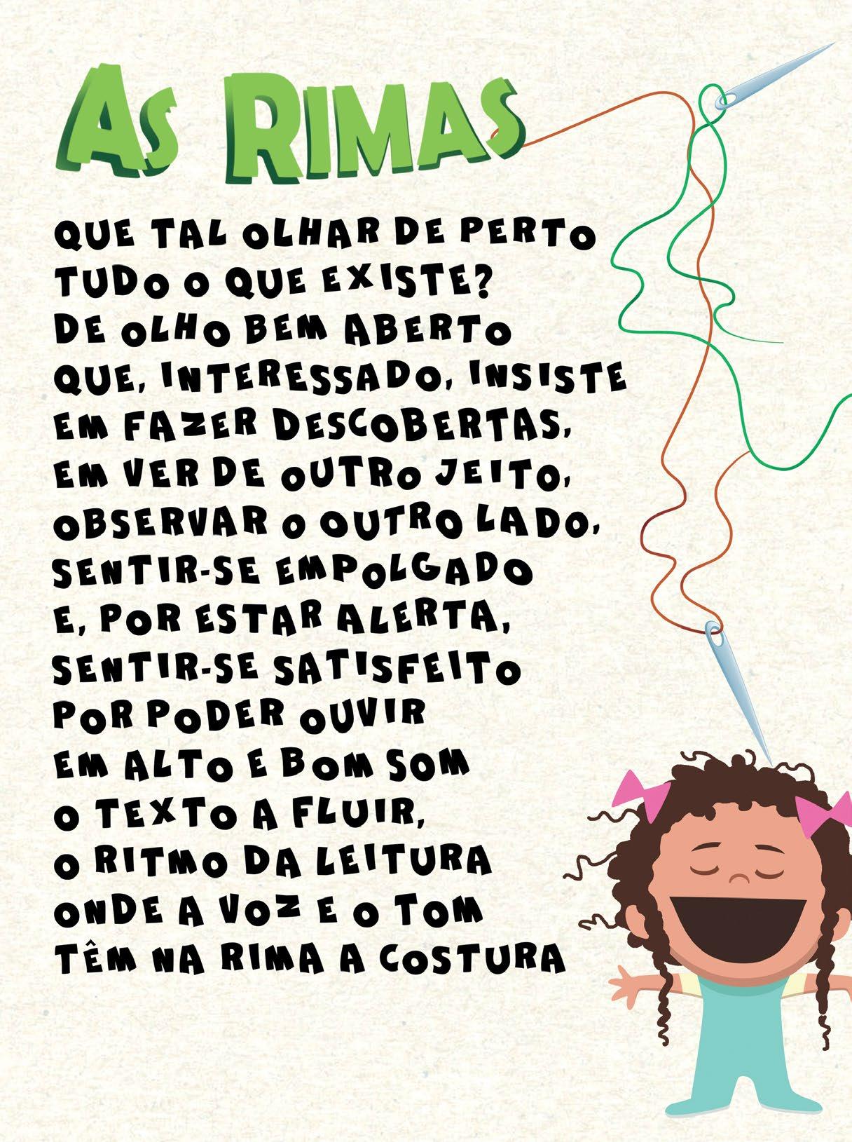 Neste livro, as palavras e as imagens brincam com coisas do mundo das crianças e, ao mesmo tempo, abrem as portas para o mundo da imaginação.