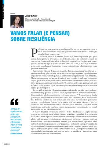 ode parecer uma provocação minha citar Darwin em um momento como o atual, no qual um vírus coloca em questionamento os hábitos da população mundial. Pode parecer... e é. Todos os médicos e serviços de saúde já foram impactados pela pandemia. Sem ignorar o problema e os efeitos imediatos do isolamento social no movimento dos consultórios, clínicas, hospitais e operadoras de planos de saúde, gostaria de me ater aqui à questão da transformação social, à mudança de hábitos e em como isso altera de forma mais perene a dinâmica de relacionamento entre pacientes e serviços. Pensemos no número de pessoas que, antes da pandemia, nunca trabalharam remotamente (home office): a crise veio e, em pouco tempo, empresas e profissionais se organizaram como puderam para não interromper completamente suas atividades. Muitas pessoas nunca haviam participado de uma reunião virtual, mas, certamente, depois que a crise passar, questionarão a necessidade de enfrentar trânsito para reuniões que podem acontecer remotamente. O comércio eletrônico, que já crescia ano após ano, ganha impulso, e pelo menos um pouco do hábito incorporar-se-á às rotinas depois que a crise passar. Porém, a ideia aqui não é fazer divagações sociais: minha questão, como profissional de Marketing que atua na área da Saúde, é pensar sobre os impactos dos novos hábitos sociais no relacionamento entre pacientes e serviços. A Telemedicina, criticada por muitos, transformou-se em uma alternativa para a manutenção do atendimento. Seja de forma amadora ou mais estruturada, está sendo experimentada por muitos pacientes e profissionais. Quando a crise passar, uma parte desse hábito terá sido incorporada. Seus pacientes questionarão a necessidade de atravessar a cidade ou perder muito tempo no trânsito para levar exames que podem ser encaminhados por e-mail e discutidos em um consultório virtual. A palavra de ordem é resiliência. Estamos – todos – tendo que nos adaptar a novos tempos, novas rotinas, novos hábitos. Nossa criatividade e capacidade de se reinventar estão sendo postas à prova. Não faz nenhum sentido agir como uma criança mimada e bater o pé, querendo a volta de nossos hábitos. Após a crise, nós – e nossas empresas e consultórios – não seremos mais os mesmos, pois nossos clientes e pacientes terão se transformado um pouquinho. Esse “pouquinho” certamente traz oportunidades de crescimento, desde que estejamos dispostos a ver isso e a mudar a nossa forma de atuação. É claro que será preciso testar e estar aberto a falhar. Quem persistir na busca de oportunidades sairá da crise mais apto aos novos – e inevitáveis – tempos, nos quais coisas novas acontecem a cada minuto.