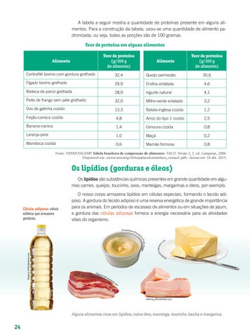 Fonte: NEPA/UNICAMP. Tabela brasileira de composição de alimentos: TACO. Versão 2, 2. ed. Campinas, 2006. Disponível em: <www.unicamp.br/nepa/taco/contar/taco_versao2.pdf>. Acesso em: 16 abr. 2015.