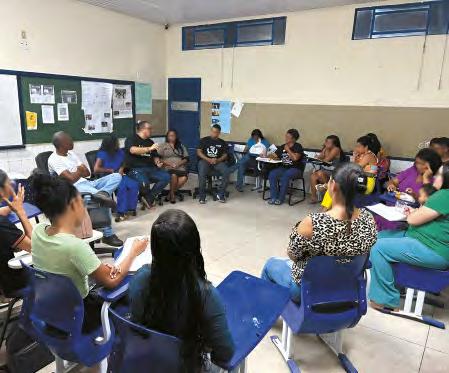 Estudantes e professor de turma da EJA de Tocantins, em 2023, em atividade de roda de conversa.