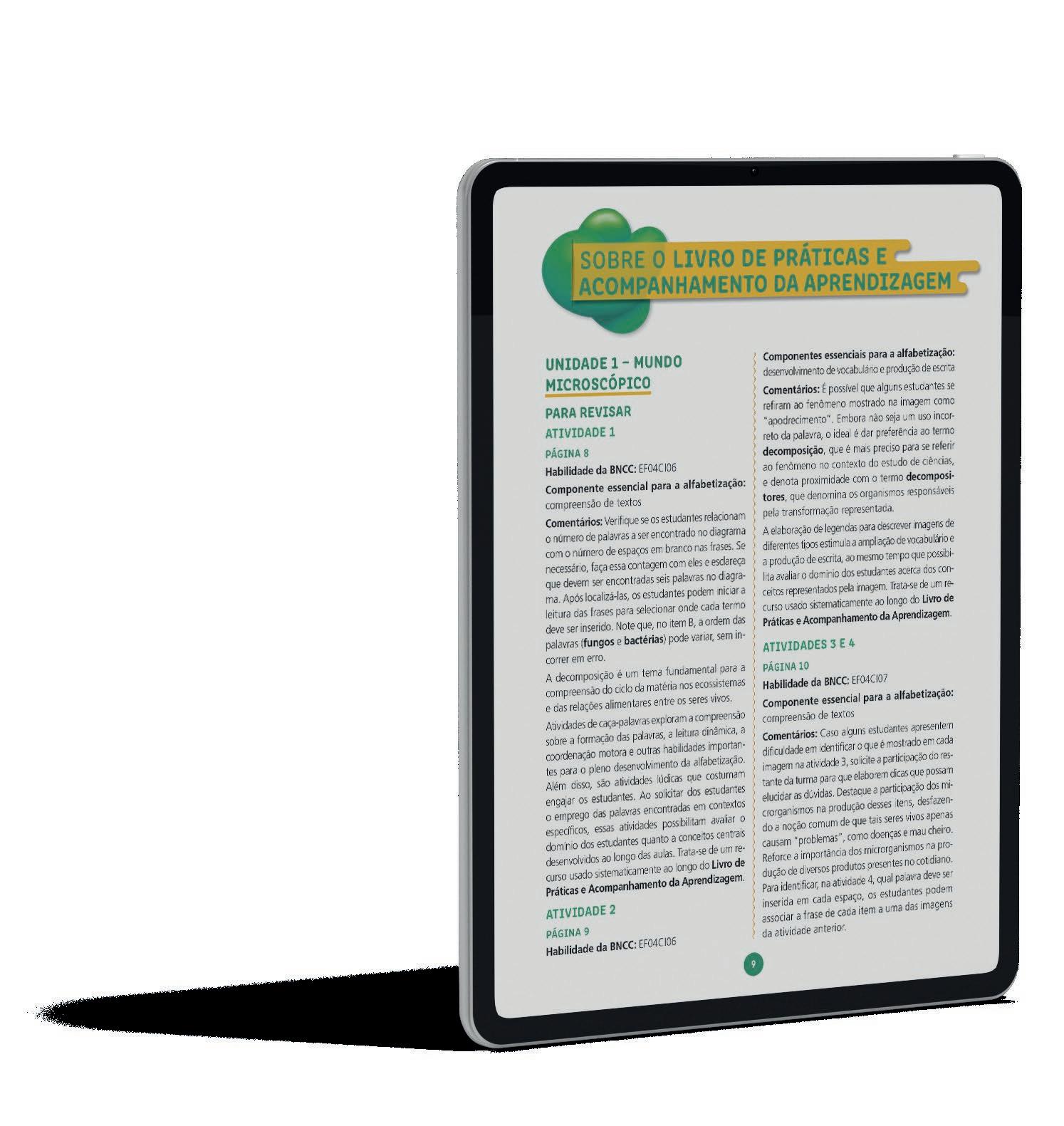 Os Livros de Práticas e Acompanhamento da Aprendizagem da coleção EntrelaçosCiências da Natureza auxiliam o estudante na consolidação das aprendizagens e no desenvolvimento das diferentes habilidades e competências. Além disso, as atividades