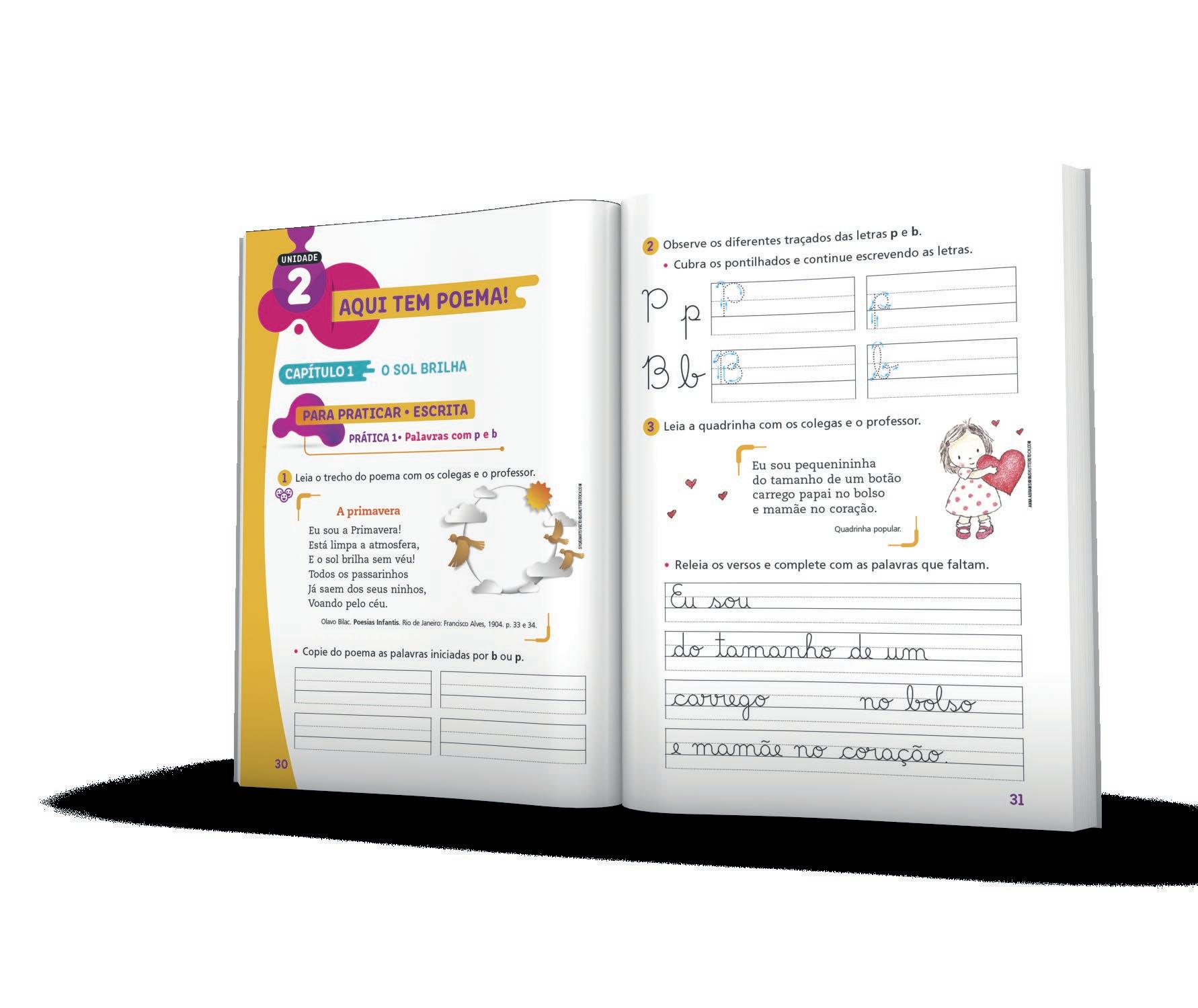 No primeiro e no segundo anos, a seção traz pauta caligráfica para o trabalho com as letras cursivas.