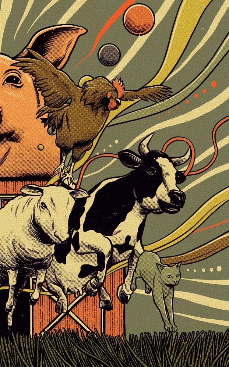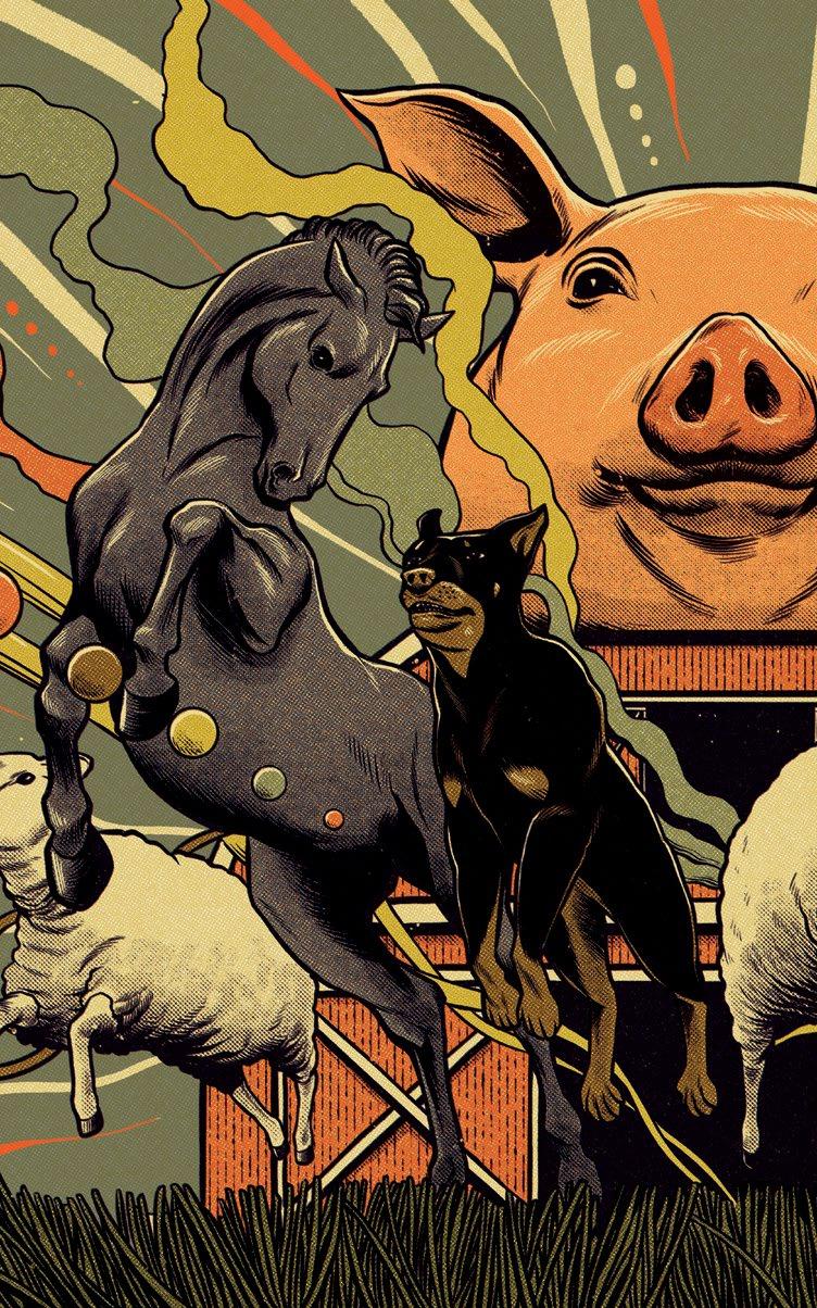 Ilustrações de Pedro Correa, do livro A revolução dos bichos.