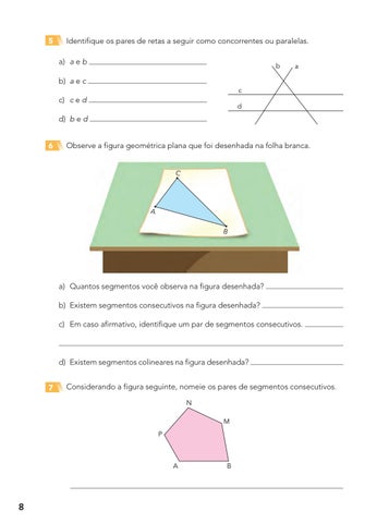a) Quantos segmentos vocĂŞ observa na figura desenhada? b) Existem segmentos consecutivos na figura desenhada? c) Em caso afirmativo, identifique um par de segmentos consecutivos.