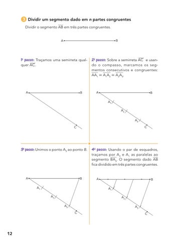 3 Dividir um segmento dado em n partes congruentes ● Dividir o segmento AB em três partes congruentes.
