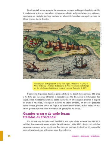 Fundada pelos portugueses em 1482, onde hoje é a República de Gana, na África Ocidental, a fortaleza de São Jorge da Mina foi durante muito tempo um dos principais entrepostos de venda de escravos. Ilustração de 1572.