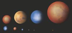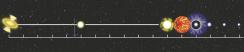 Nessa página, um pixel (um ponto na tela) representa a Lua; os demais astros, bem como as distâncias entre eles, foram calculados com base nessa escala. Em inglês.