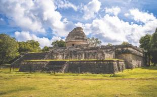 Observatório astronômico da antiga cidade maia de Chichen Itza. México, 2019.