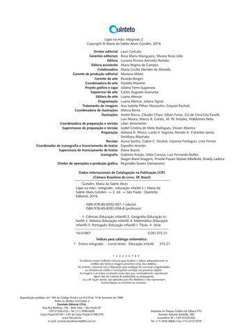 Dados Internacionais de Catalogação na Publicação (CIP) (Câmara Brasileira do Livro, SP, Brasil) Gondim, Maria da Salete Alves Lápis na mão : integrado : educação infantil 2 / Maria da Salete Alves Gondim. — 2. ed. — São Paulo : Quinteto Editorial, 2016. ISBN 978-85-8392-057-1 (aluno) ISBN 978-85-8392-058-8 (professor) 1. Ciências (Educação infantil) 2. Geografia (Educação infantil) 3. História (Educação infantil) 4. Matemática (Educação infantil) 5. Português (Educação infantil) I. Título. II. Série. 16-01867