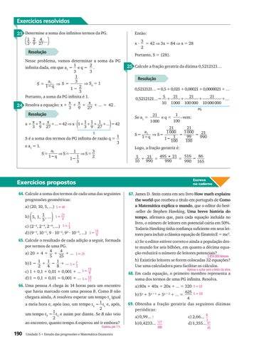 a) 80x 40x 20x ... 320 S {2} 625 S {3} b) 5x 5x 1 5x 2 ... 4 69. Obtenha a fração geratriz das seguintes dĂzimas periĂłdicas: a) 0,99... 1 b) 0,4233...