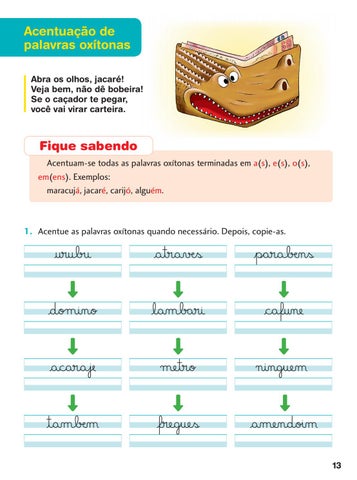 Acentuação de palavras oxítonas Abra os olhos, jacaré! Veja bem, não dê bobeira! Se o caçador te pegar, você vai virar carteira.