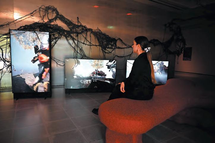 Ele se valeu da videoinstalação, que explora tanto o plano da imagem em movimento quanto o do ambiente. O espectador é convidado a usar outros sentidos, além da visão, e a dialogar com a arte por meio do corpo.