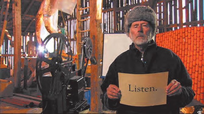 [Locutora] Tente imaginar a cena. Um homem em uma sala, com o rosto coberto de mel e folhas de ouro, segurando uma lebre nas mãos, espécie parecida com um coelho. Só que a lebre está morta. E o artista alemão está falando com a lebre morta. E ele faz isso durante três horas.
