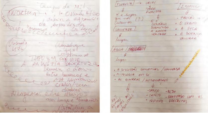 “Eu comecei a organizar o meu pensamento e pensar performance, pensar produção fílmica, pensar produção fotográfica como… como, é agentes, né, de ritualidades, né! E a fotografia e o vídeo também passaram, deixaram de ser registro, né, e passaram a ser, é, um prolongamento, né, do próprio ritual, né, uma ação viva do próprio ritual. Isso é muito importante pra compreensão do meu trabalho, porque não é só estético, mas eu busco, é, que o trabalho aja, né, sobre as pessoas, né, como um devir do ritual, né,. Como se, então, aquela ideia ocidental que a fotografia é a morte, né, o registro de um momento que morreu, que se foi, de um passado que se foi, não cabe aqui, né, não cabe dentro desse universo. Principalmente porque também a gente tem uma outra concepção, uma concepção esférica de temporalidade. Então, tempo para a gente é um tempo né que comunga, né, o passado, o presente e o futuro, né, é algo esférico. Então, é, o futuro é o imediatamente agora e o passado está aqui também, né, então é um tempo circular onde se une, né, essas temporalidades […]”.