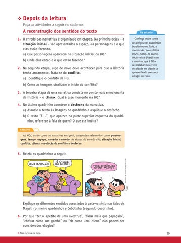 tenha andamento. Trata-se do conflito. a) Identifique o conflito da HQ. b) Como as imagens sinalizam o início do conflito? 3. A terceira etapa de uma narrativa consiste no ponto mais emocionante