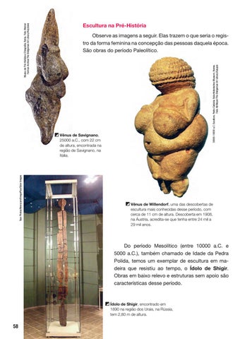 Observe as imagens a seguir. Elas trazem o que seria o registro da forma feminina na concepção das pessoas daquela época. São obras do período Paleolítico. 30000-18000 a.C. Escultura. Pedra Calcária. Naturhistorisches Museum, Vienna. Foto: Ali Meyer/The Bridgeman Art Library/Easypix