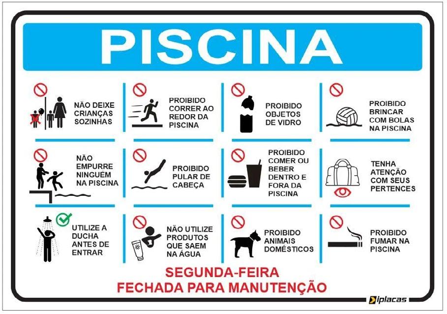 um comportamento responsável e defensivo nas piscinas, respeitando os limites e regras impostas. Um dos deveres do síndico é garantir que moradores, visitantes e funcionários cumpram as normas de uso dos espaços de lazer determinadas no regimento interno e, se todos cumprirem a sua parte, com certeza, os acidentes não acontecerão!