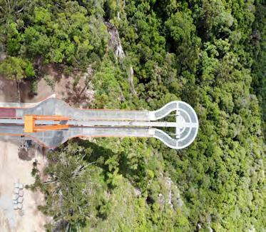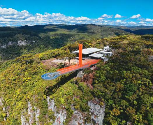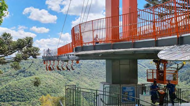 Com natureza exuberante, o Parque da Ferradura foi o lo cal escolhido para receber a plataforma estaiada de aço e vidro, única no mundo, que avança 35 metros sobre o Vale de mesmo nome, oferecendo uma vista de tirar o fôlego do Rio Caí a 360 metros de altura. O parque Skyglass foi inau gurado em dezembro de 2020. No atrativo, o visitante pode apreciar toda a sensação de liberdade caminhando por cima do vidro ou andar por baixo da plataforma num monotrilho. O brinquedo, que recebeu o nome de Abusado, oferece 10 cadeiras suspensas. Com capacidade para receber três mil pessoas por dia, o parque ainda conta com completa infraes trutura para o visitante, incluindo praça de alimentação, lojas, estacionamento e o também inédito Memorial do Ferro de Passar, com um acervo aproximado de 300 peças.