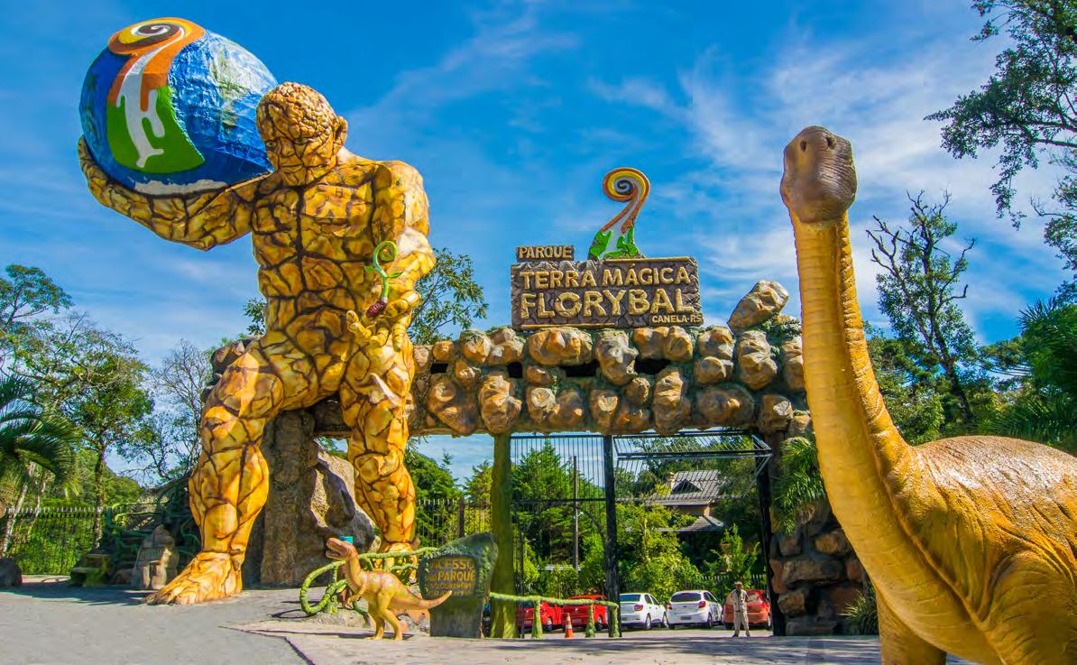ATerra Mágica Florybal é um parque temático localizado em Canela (RS) com mais de 69 mil metros quadrados e 2,5 km de trilhas em meio à mata nativa. São 42 atrações em diversos cenários, como o Território dos Dinossauros, Espaço da Fé, Casa do Mago, Jardim da Fada etc. No caminho, o vi sitante pode aproveitar dezenas de brinquedos para todas as idades e tamanhos, como o Simulador de Montanha Russa, o Aerobike, o Cinema 7D, o Velociráptor e o Voo do Pterodác tilo. Das 42 atrações do parque, 39 estão inclusas no ingres so e somente três brinquedos são pagos à parte. Mais de 10 personagens interagem com o público ao longo do caminho e diversos espetáculos acontecem diariamente, como teatro, malabares, dança, teatro de fantoches e o grande Show dos Personagens sempre no final da tarde.