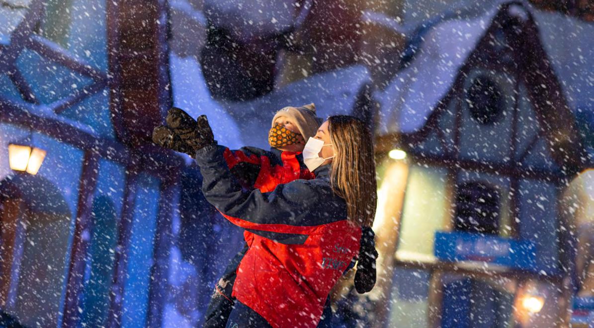 Oé o primeiro parque temático indoor com neve de ver dade do país. As instalações são divididas entre duas estruturas, a área nevada e os demais espaços do parque. Na primeira, uma montanha de neve de 120 metros de extensão apresenta o Tubing (descida em boia) e o Ice Motion (descida em boia em um túnel de 90m), um castelo de gelo com três mini tubings infantis e pista para aulas e prática esportiva na neve, além da Vila da Neve, um espaço com floquinhos cain do o dia todo. Para a entrada no ambiente nevado, o parque disponibiliza roupas impermeáveis, pois a temperatura é real mente baixa, por volta de -5°C. O complexo conta ainda com uma pista de patinação no gelo, lojas, praça de alimentação e uma área kids, com brinquedos específicos para os pequenos, fora do espaço dedicado à neve.
