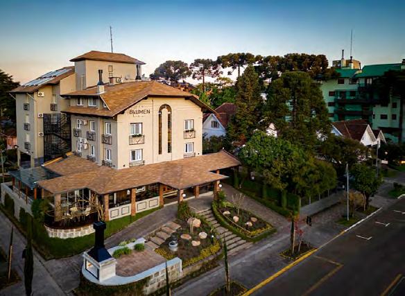 tradicional ponto de hotelaria de Canela, loca lizado a uma quadra da Catedral de Pedra, re nasceu. O Blumen Hotel Boutique iniciou sua ope ração em 10 de agosto, no prédio que por mais de 25 anos atendeu hóspedes como Hotel Pousada Blumenberg. a proposta do novo hotel é intimista, com o objetivo de oferecer uma vivência diferencia da, com aconchego e sofisticação, para hóspedes que valorizam boas experiências. O Blumen preza pelo atendimento de excelência personalizado, com equipe profissional qualificada. Todas as acomoda ções têm cama queen, com enxoval 400 fios e ame nities l’Occitane au Brésil. além da área de recep ção, o hotel conta com áreas comuns como a sala de estar, uma aconchegante sala da lareira, espaço fitness e deck externo. Outras novidades devem ser implementadas até o fim do ano. informações: blumenhotelboutique.com.br
