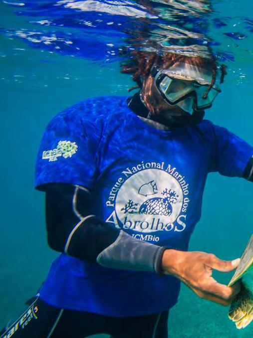 Primeiro parque nacional marinho do Brasil, abrolhos protege a maior biodiversidade marinha do atlântico Sul – algo que chamou a atenção até mesmo de Charles Darwin, ainda no século XiX. além de ser o lar para di versas espécies de peixes e corais, abrolhos é o principal berçário das baleias-jubarte no país e um santuário para aves e tartarugas marinhas ameaçadas.