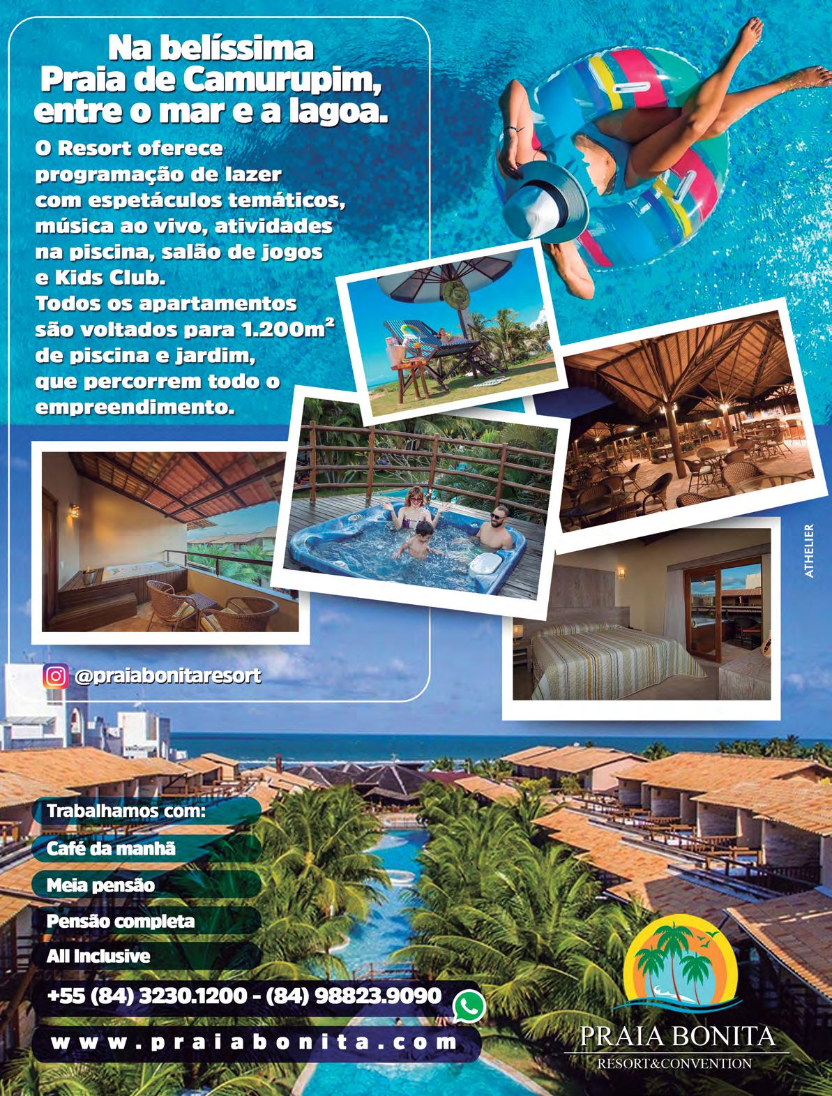 Aprimavera começou e se apresenta como a estação perfeita para passeios em meio a natureza. em Nísia Floresta, no Rio Grande do Norte, não faltam oportunida des para esse tipo de lazer, já que a localidade conta com mais de 20 lagoas, mirantes e belas praias. Rodeada por uma areia fofa, a lagoa de arituba é larga e possui água clara e cristalina, tornando o passeio ideal para crianças. ali é possível praticar caiaque, pedalinho e stand up pad dle, e os mais aventureiros podem se arriscar na tirole sa. Já a Praia de Camurupim tem arrecifes que formam piscinas naturais, cujas águas mornas atraem crianças e adultos que querem relaxar e aproveitar o sol. ali também é possível fazer passeios de caiaque ou pedalinho. Para se hospedar na região, uma opção interessante é o Praia Bonita Resort & Conventions. informações: praiabonita.com