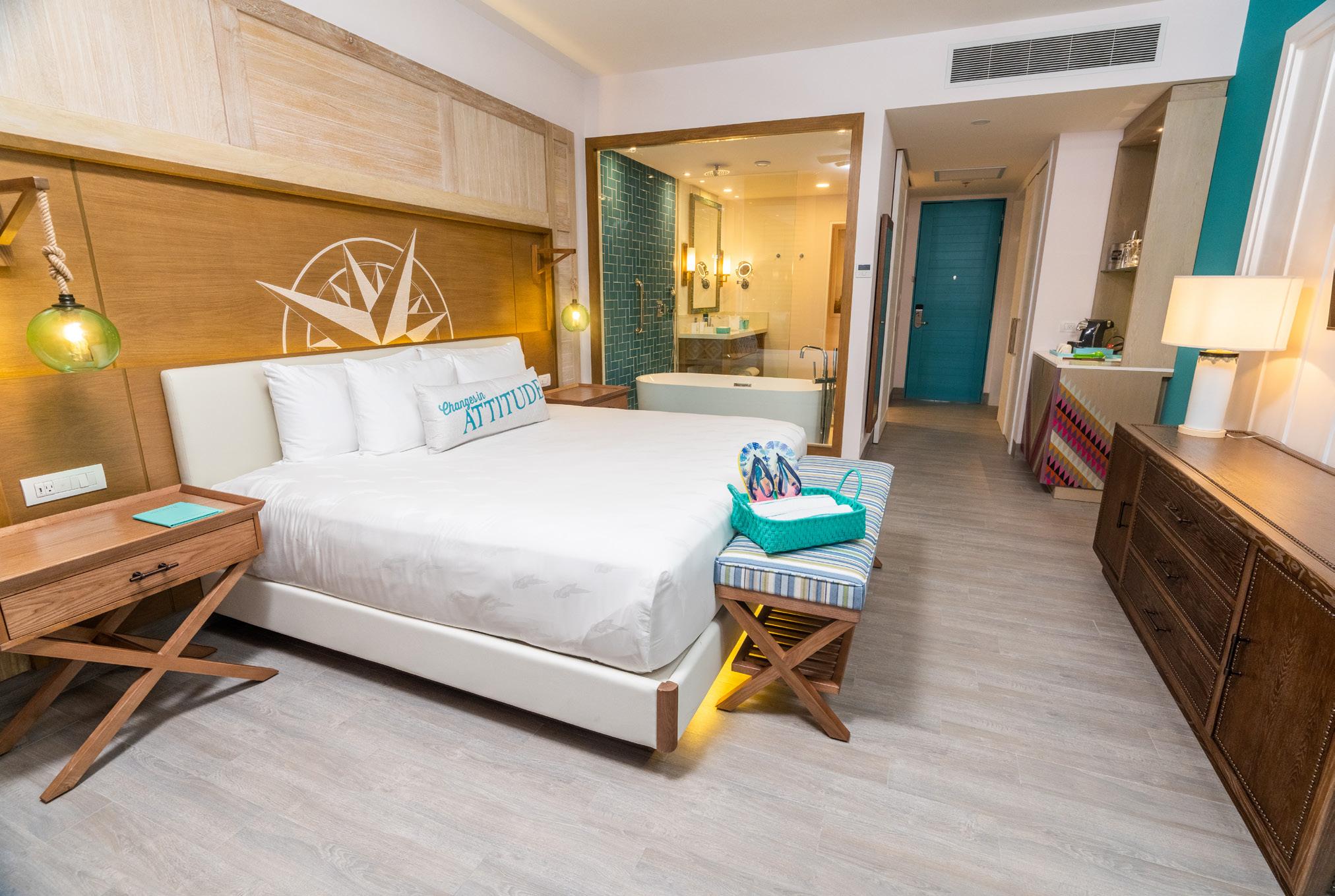 O resort oferece 355 suítes projetadas para proporcionar uma excelente estadia superando as expectativas, necessidades e desejos dos viajantes mais experientes. A decoração dos quartos reflete a essência da marca margaritaville, com cores vibrantes, móveis confortáveis e detalhes que evocam um ambiente de férias relaxantes, inspirados na cultura litorânea.