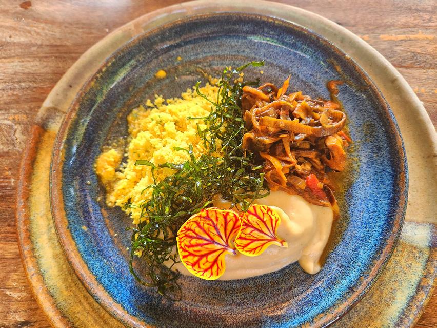 çam o compromisso com a sustentabilidade. Já a experiência gastronômica no Banana Bamboo é um convite à descoberta da ecogastronomia. O cardápio, livre de carnes, valoriza os peixes frescos e os produtos locais, colhidos na propriedade ou produzidos nos arredores. Do café da manhã às refeições principais, os hóspedes desfrutam de uma culinária rica em sabores e atenta à sazonalidade dos ingredientes.