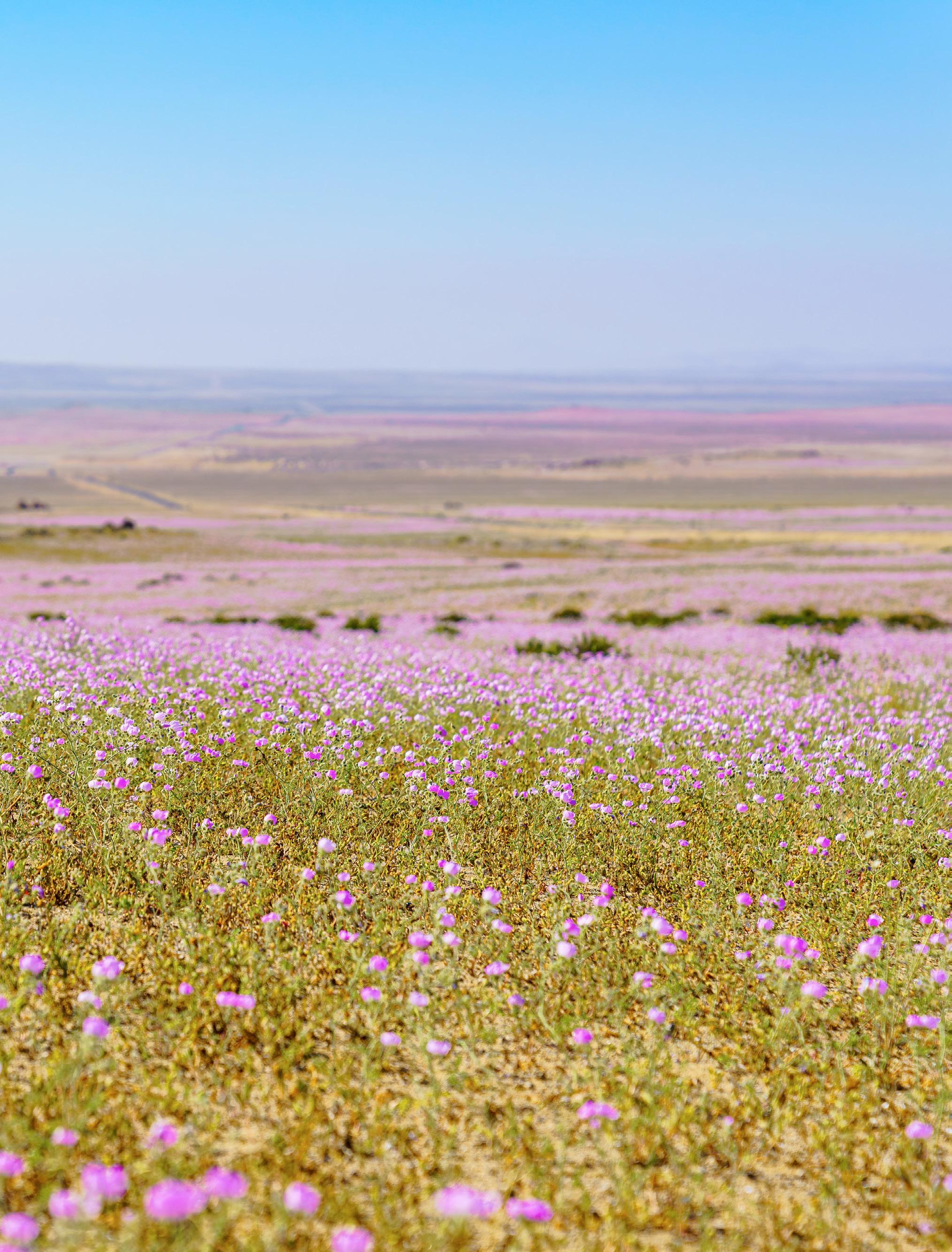 Há ainda outra boa surpresa durante a primavera: geralmente a partir de setembro, o atacama ganha novas cores graças a bulbos que resistem ao clima rigoroso e brotam como flores roxas e brancas de variadas espécies, cobrindo campos inteiros. O fenômeno é conhecido como “deserto florido” e depende