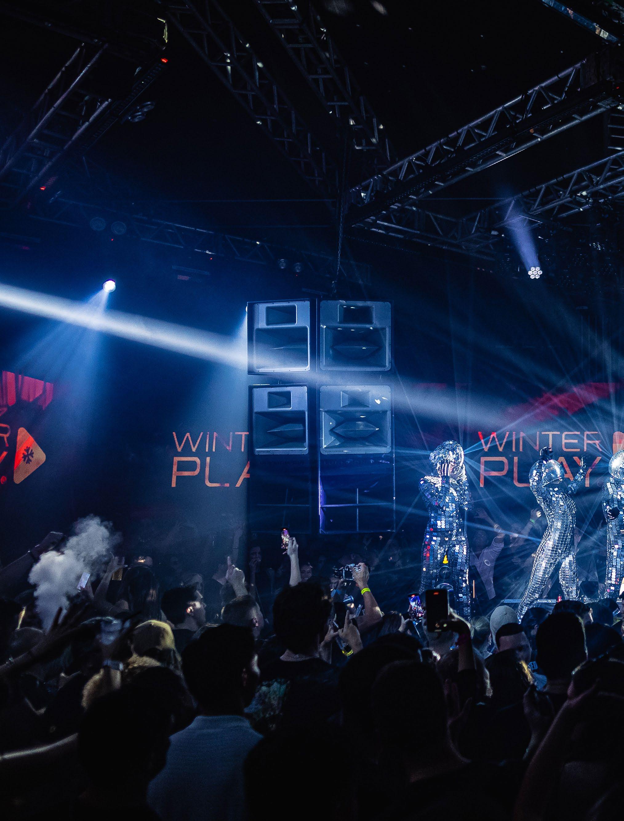 em busca de novidades e referências. A estrutura do evento é impecável, com palcos bem montados, sistemas de som e iluminação de última geração. A organização também é um ponto forte e possui logística eficiente, segurança reforçada, bares e áreas VIP. Além do lineup de renome, o Winter Play oferece diversas experiências exclusivas para seus participantes, como pool parties, after-parties e até aulas de yoga. Essas atividades proporcionam momentos memoráveis e ampliam a experiência do festival. Os patrocinadores também participam ativamente do festival proporcionando várias ativações e benefícios adicionais aos participantes, tudo isso com o intuito de agregar ainda mais valor ao evento.