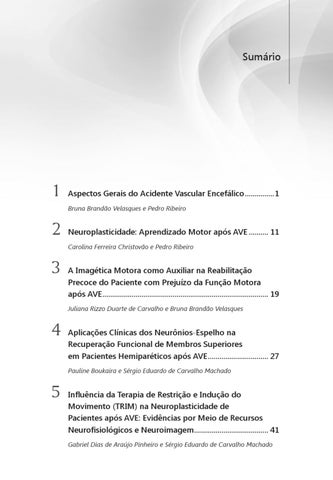 Aplicações Clínicas dos Neurônios-Espelho na Recuperação Funcional de Membros Superiores em Pacientes Hemiparéticos após AVE ............................... 27 Pauline Boukaira e Sérgio Eduardo de Carvalho Machado
