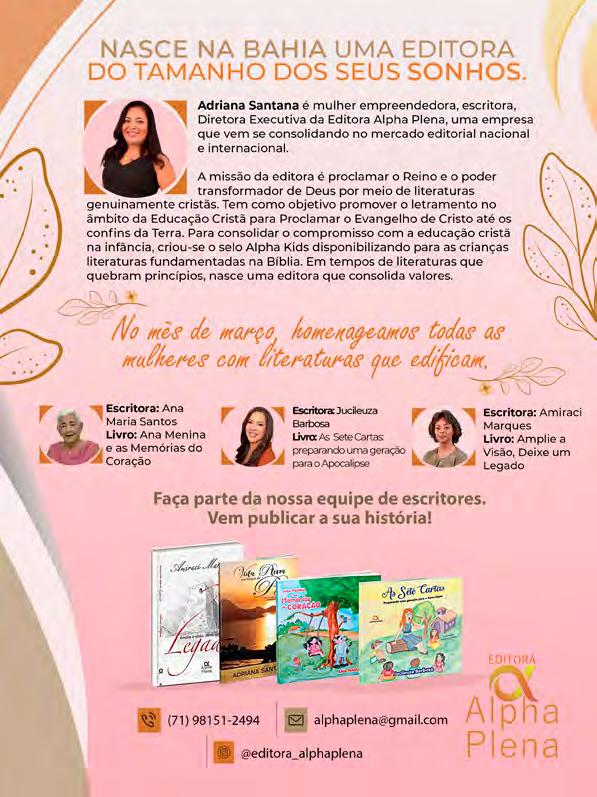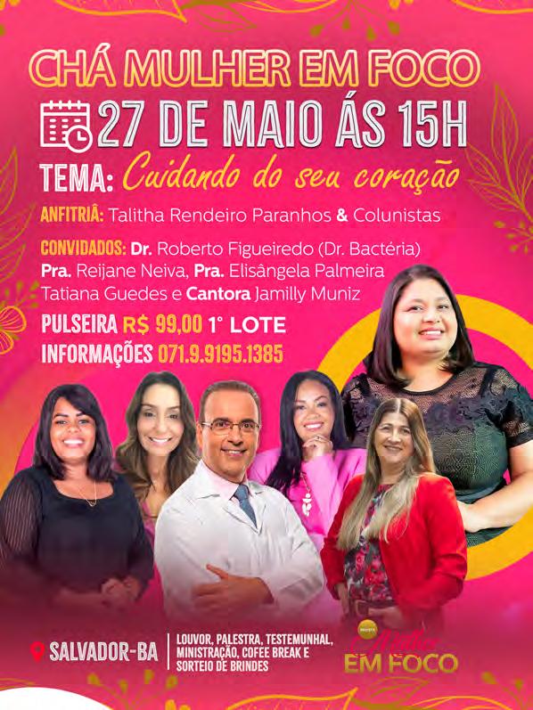6 A MULHER EM FOCO Pra. Cristina Silva 4 7 CAPA: Fé, Família e Trabalho PASSOS DE FÉ Pra. Elisângela Palmeira MINHA VIDA É UMA VIAGEM Ely Apresentaçãos