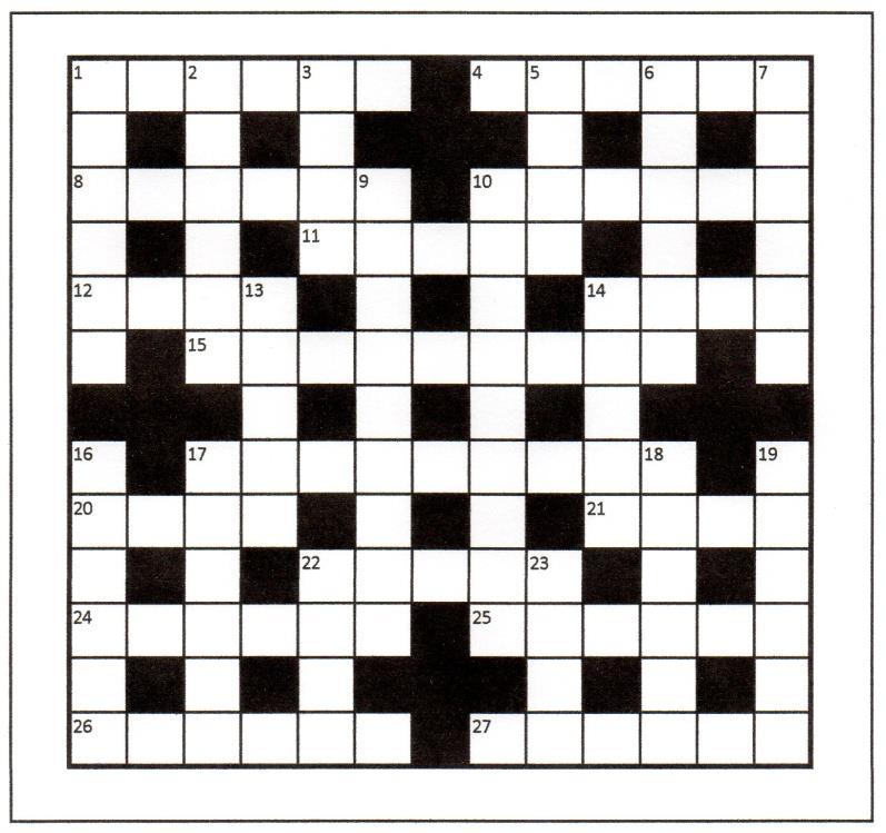 Across: 1) Saddle, 4) Island, 8) Canada, 10) Tinsel, 11) Offal, 12) Need, 14) Inca, 15) Detergent, 17) Raindrops, 20) Ahoy, 21) That, 22) No one, 24) Baboon, 25) Engine 26) Throne, 27) Ascend.