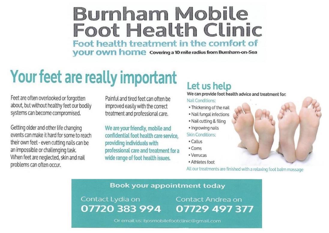 Geoff Banham 07766 670737 Tues 10 - 11 am CC