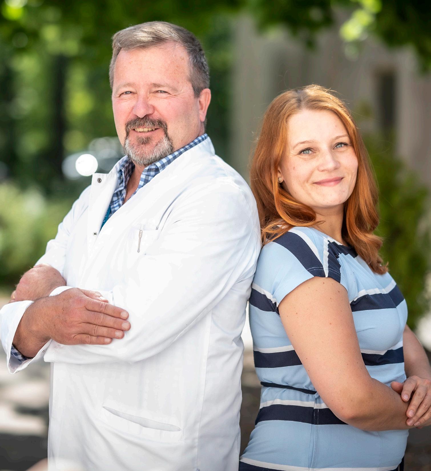 Opetushoitajana toimiva Maija Ketola ja sairaalan johtava ylilääkäri Kalevi Hietaniemi viihtyvät Kaunialassa.