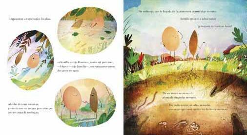 Levanta la solapa y verás cómo brota una semilla en el suelo, aparecen las hojas y crece la raíz para convertirse en una hortaliza rosada y crujiente.
