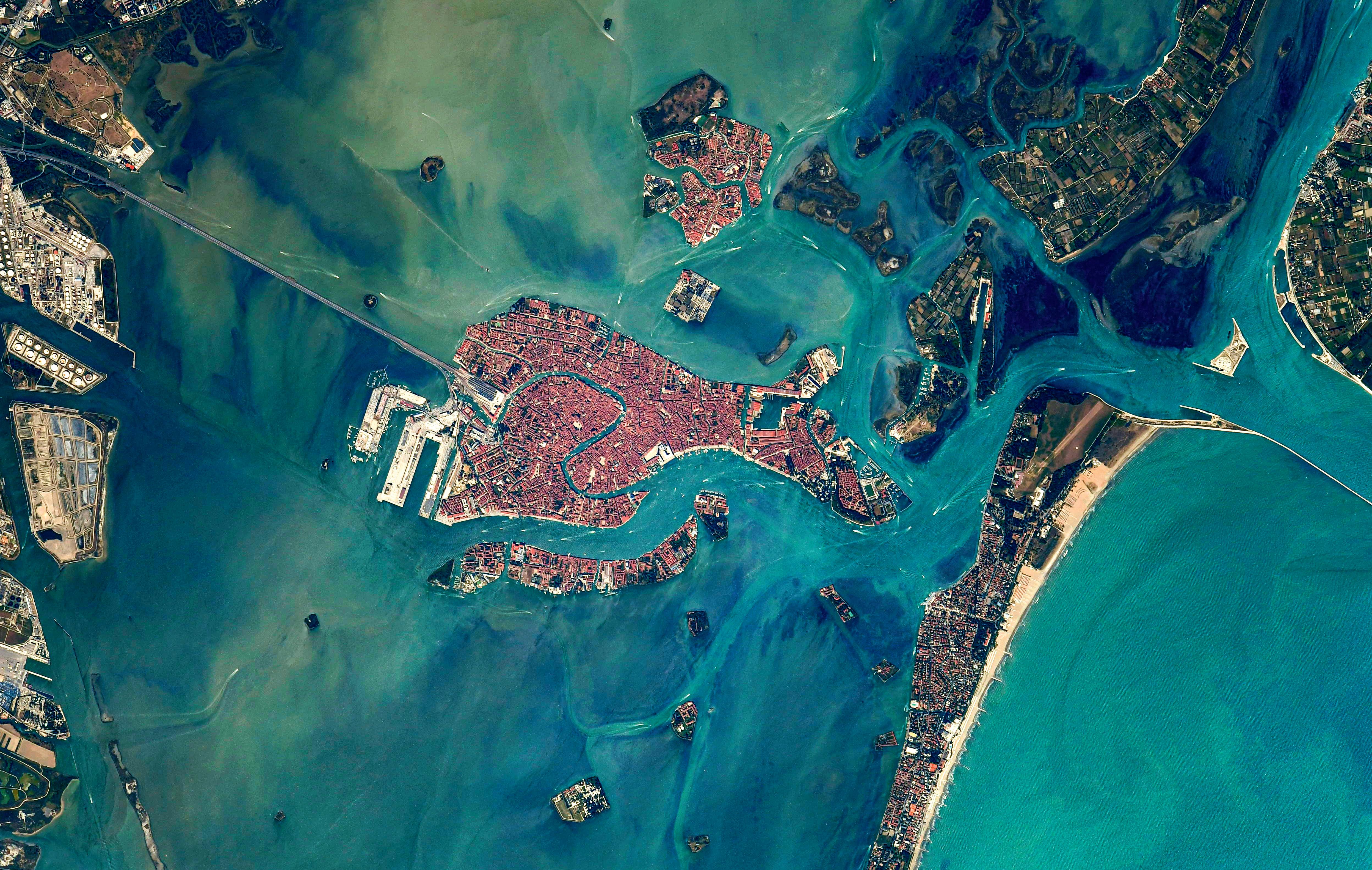 La ciutat italiana flotant acull una infinitat de meravelles: la llacuna, els palaus construïts sobre puntals, el ball de gòndoles. El seu traçat, fàcil de reconèixer des de l’espai, ofereix una vista canviant segons com es reflecteixi la llum sobre l’aigua.