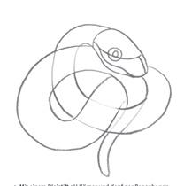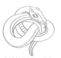 4 Para encargarme del torso, dibujo unas apretadas líneas horizontales bajo el cuello y por el vientre. A continuación, añado la cola, que estará enroscada en torno a una especie de roca de hielo. Valiéndome de la orientación de mis líneas de construcción, refino las figuras de las cuatro patas y de los pies. Después, borro todas las líneas guía que ya no me hagan falta.