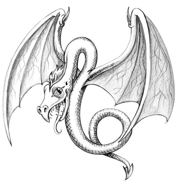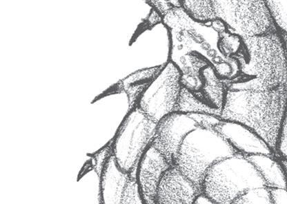 Lamayoría de las criaturas mitológicas son amalgamas de animales reales, e incluso de personas. Los dragones, por ejemplo, pueden tener rasgos de serpiente, león, águila, pez y muchos otros animales. Esto nos permite emplear referencias fotográficas para crear los distintos elementos. Puedo, por ejemplo, emplear una referencia fotográfica del ala de un ave y del de un murciélago para dibujar el ala de un dragón. El uso de referencias fotográficas puede ayudarnos a darle realismo a nuestros dibujos de fantasía. Sin embargo, no debemos sentirnos esclavos de nuestro material de referencia: los dragones son criaturas mitológicas, por lo que no es esencial que nos rijamos por una anatomía realista.