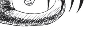 3 Uso un estilógrafo de 0,3 mm con tinta resistente al agua para contornear los rasgos faciales y la mayoría del cabello, así como el peine. Después, uso una punta de 0,2 mm para realizar una trama cruzada con la que creo las sombras del cuello y del peine. Empleo el mismo utensilio y la misma técnica en torno a los ojos y en los labios.