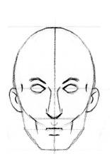 Líneas guía faciales de personas Para localizar las líneas guía faciales, divida la cara por la mitad, horizontal y verticalmente. Vuelva a dividir la parte inferior por la mitad para indicar dónde quedará la base de la nariz. Divida de nuevo para ver dónde estará el labio inferior. La línea de crecimiento del cabello está en un tercio de la distancia que hay de la parte superior de la cabeza hasta los ojos; la línea de las cejas se encuentra justo encima de las orejas. Los ojos están centrados entre la línea central vertical y los lados de la cabeza; además, están separados por el ancho de un ojo.