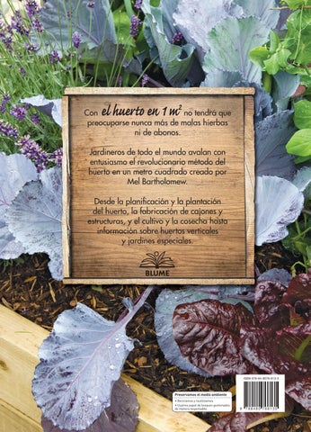 Con no tendrá que preocuparse nunca más de malas hierbas ni de abonos. Jardineros de todo el mundo avalan con entusiasmo el revolucionario método del huerto en un metro cuadrado creado por Mel Bartholomew. Desde la planificación y la plantación del huerto, la fabricación de cajones y estructuras, y el cultivo y la cosecha hasta información sobre huertos verticales y jardines especiales.